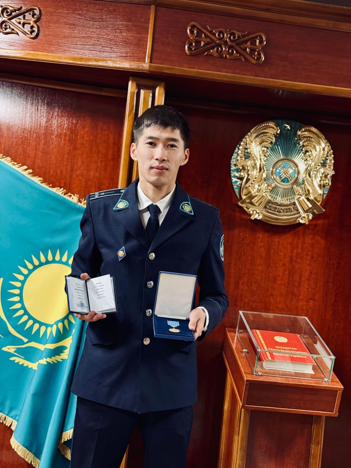 Облыс әкімі Дархан Сатыбалды қызмет барысында екі рет тұрғындарды ажалдан арашалап қалған кентаулық учаскелік полиция инспекторы Бағзатхан Есімхан Әдетханұлына ҚР Президенті Қасым-Жомарт Кемелұлы Тоқаевтың Жарлығымен “Ерлігі үшін” төсбелгісін табыстады.