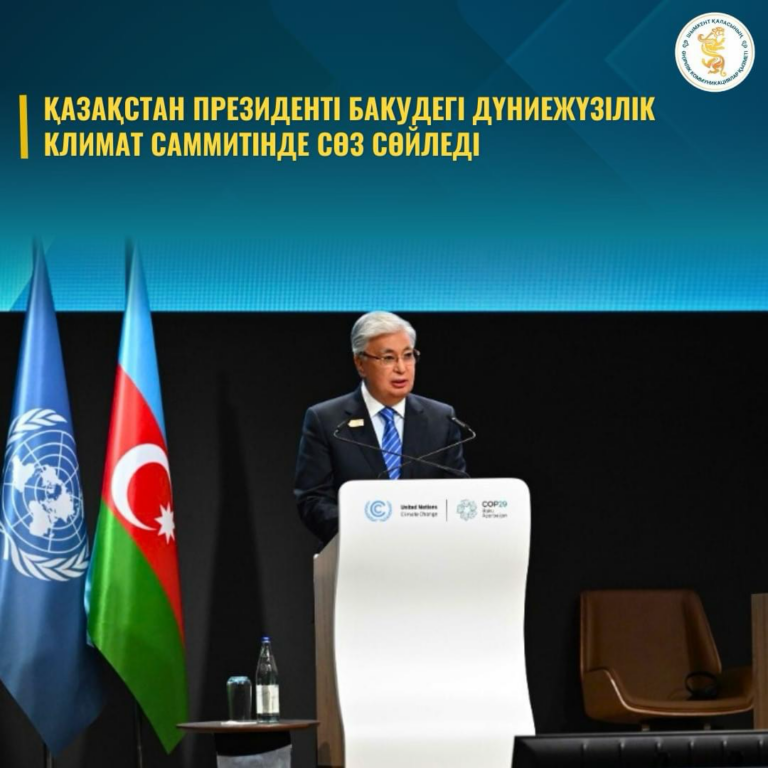 Президент Қасым-Жомарт Тоқаев Біріккен Ұлттар Ұйымының Климаттың өзгеруі туралы негіздемелік конвенциясына қосылушы тараптардың 29-шы конференциясы аясында өтіп жатқан климат саласындағы іс-қимыл жөніндегі әлем көшбасшыларының саммитіне қатысты.