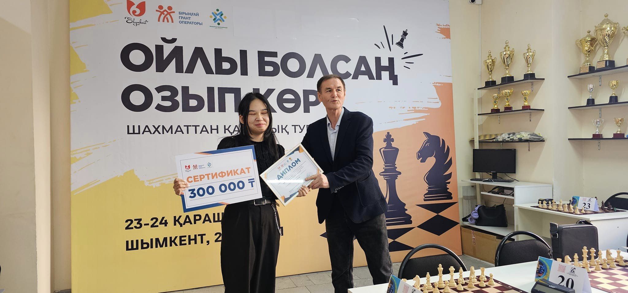 Алайда , Шымкент қаласы ішкі саясат және жастар ісі жөніндегі басқарманың ұйымдастырумен өткен «Зияткерлік ұлт » жобасының » Ойлы болсаң, озып көр ! » байқауының жеңімпаздарын марапаттап, шахмат жанкүйерлерінің алдында құттықтау сөз сөйлеуіме тура келді.