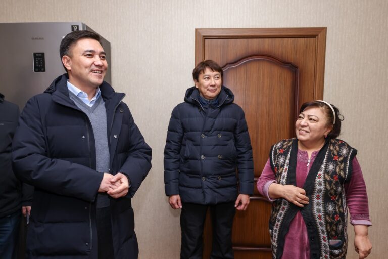 Шымкент қаласының әкімі Ғабит Сыздықбеков және «QazaqGaz «ҰК» АҚ Басқарма Төрағасы Санжар Жаркешов тұрғындармен бірге Қайнарбұлақ (екінші кезең), Тассай және