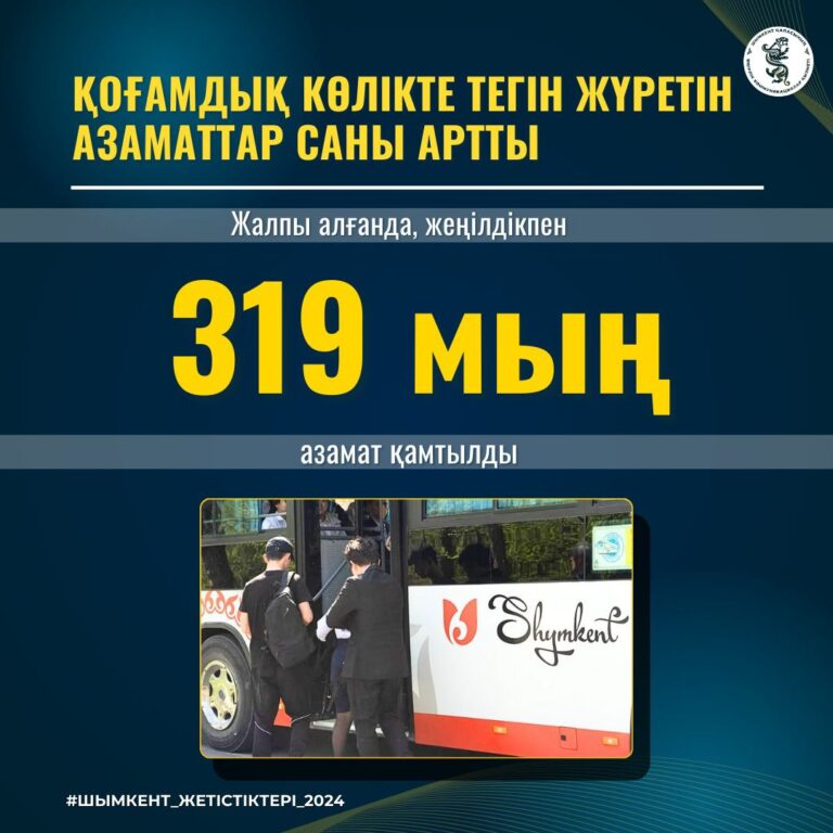 Шымкент қаласы әкімдігі мен қалалық мәслихаттың бірлескен шешіміне сәйкес, 2024 жылдың 1 мамырынан бастап қоғамдық көлікте 14 жекелеген санаттағы азаматтарға тегін жүру құқығы берілді. Бұл шешім қала тұрғындары мен ұйымдардың көптеген өтініштерін ескере отырып қабылданды.