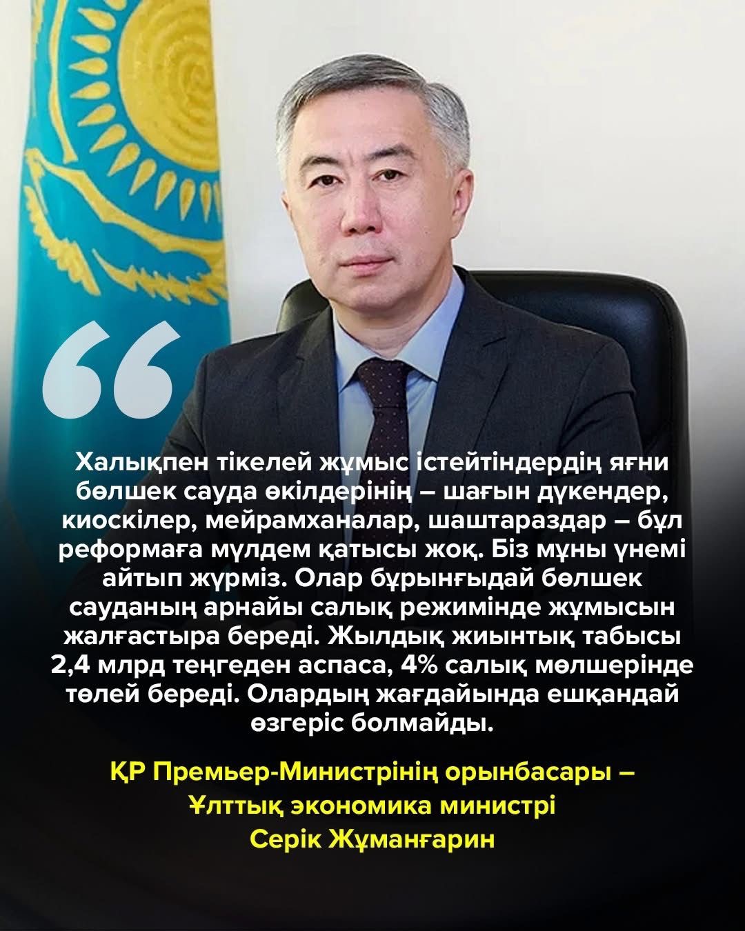 Қазір елімізде түрлі салаларға арналған салықтық ынталандырулар бар және олардың көбі өзгеріссіз қалады. Мәселен, ауыл шаруашылығы саласындағы жеңілдіктер сақталады, бұл отандық азық-түлік бағасының қатты қымбаттауына жол бермейді.