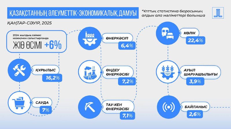 Ұлттық статистика бюросының болжамды деректеріне сәйкес, еліміздің 2025 жылғы қаңтар-сәуірдегі әлеуметтік–экономикалық дамуының алдын ала қорытындылары.