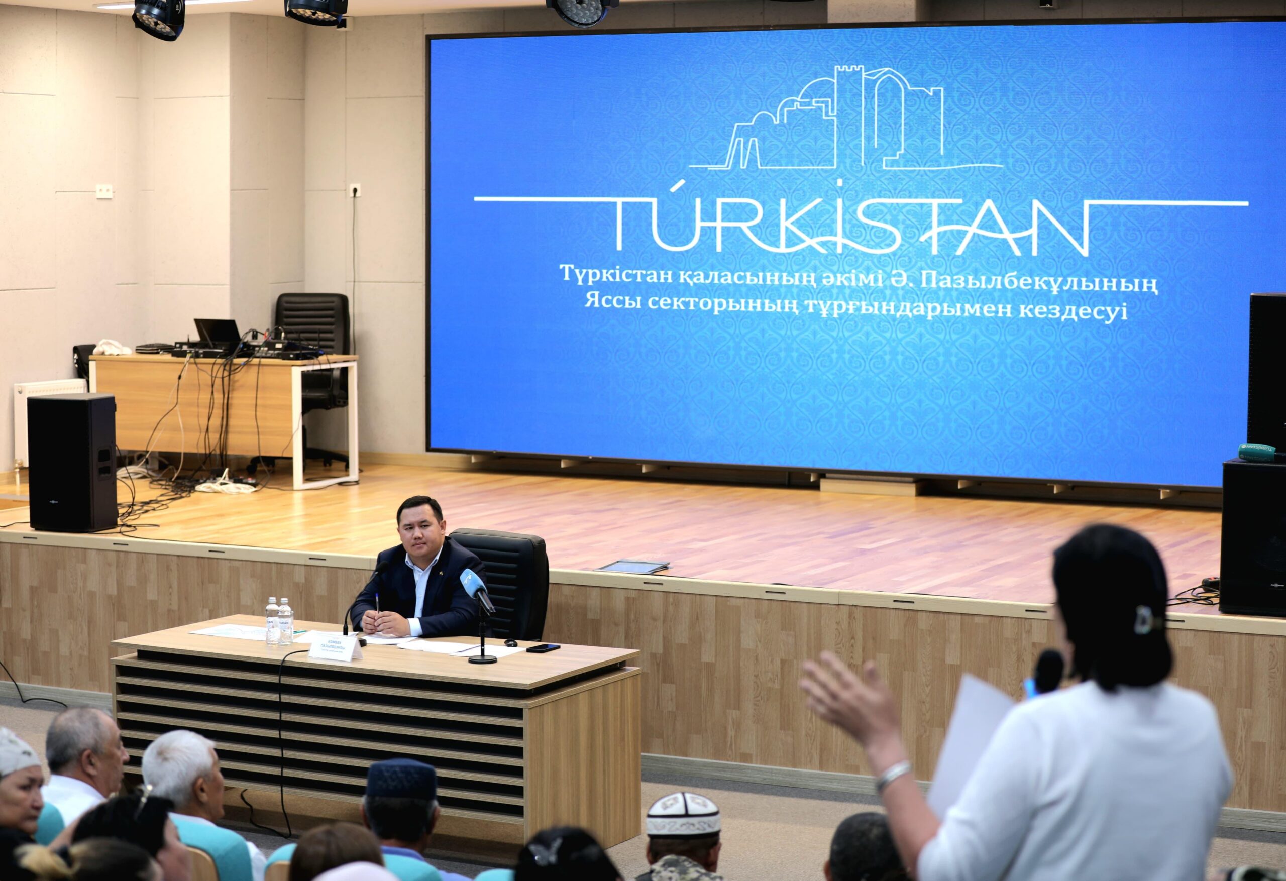 Әзімбек Пазылбекұлы өз сөзінде Түркістан қаласының даму динамикасына тоқталып, мемлекеттік бағдарламалар аясында жүзеге асып жатқан инфрақұрылымдық жобалармен таныстырып, тұрғындардың белсенділігі мен ұсыныс-пікірлерінің маңыздылығын атап өтті.