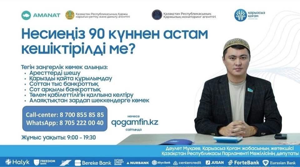 90 күннен асқан қарыздары бар адамдарға «Қарызсыз Қоғам» жобасы көмектеседі.