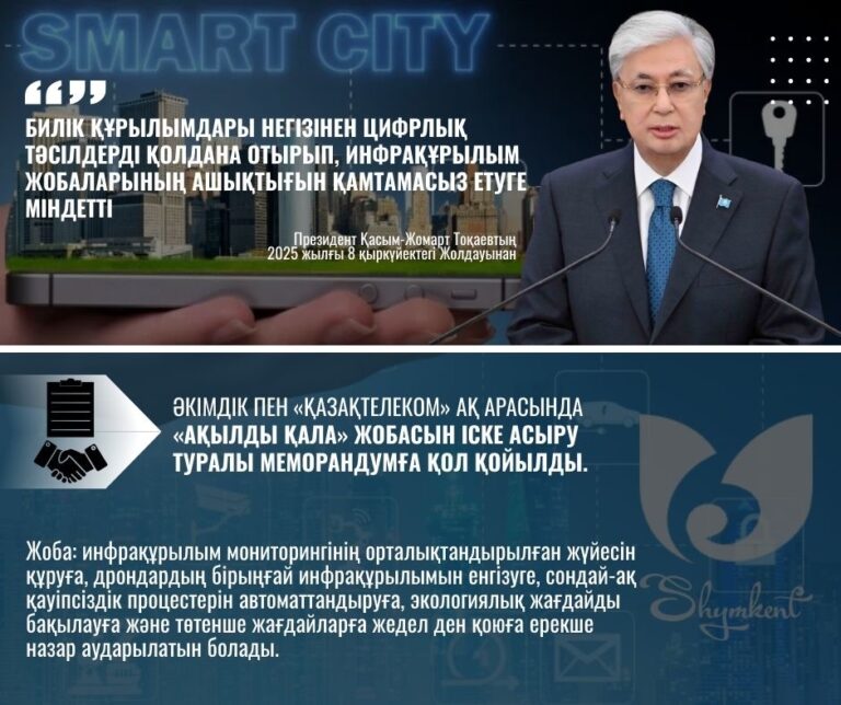 Қазақстан Республикасы Президенті Қасым-Жомарт Тоқаев 2025 жылғы 8 қыркүйектегі Жолдауында инфрақұрылымдық жобалардың ашықтығын қамтамасыз ету қажеттігін ерекше атап өткен болатын. Мемлекет басшысы билік құрылымдары цифрлық тәсілдерді кеңінен қолдануы тиіс екенін, бастамалардың ашық әрі тиімді жүзеге асырылуы маңызды екенін жеткізді.